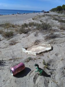 On the whole the local naturists, and the campsite above, keep the place fairly clean. However, having decided to clean up, I thought I’d better find some muck, somewhere. By going along the edge of the beach, scouring the steep sections of loose and tumbling stones, and scouting around the sharp undergrowth and trees along the cliff edge, I found sufficient rubbish to keep me busy for a couple of hours.