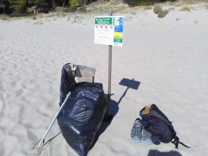 Inbetween a couple of dips into the smoothly sloping golden sand covered beach, I managed to collect a solid black bag full of junk which had been carelessly collecting itself in the bushes.